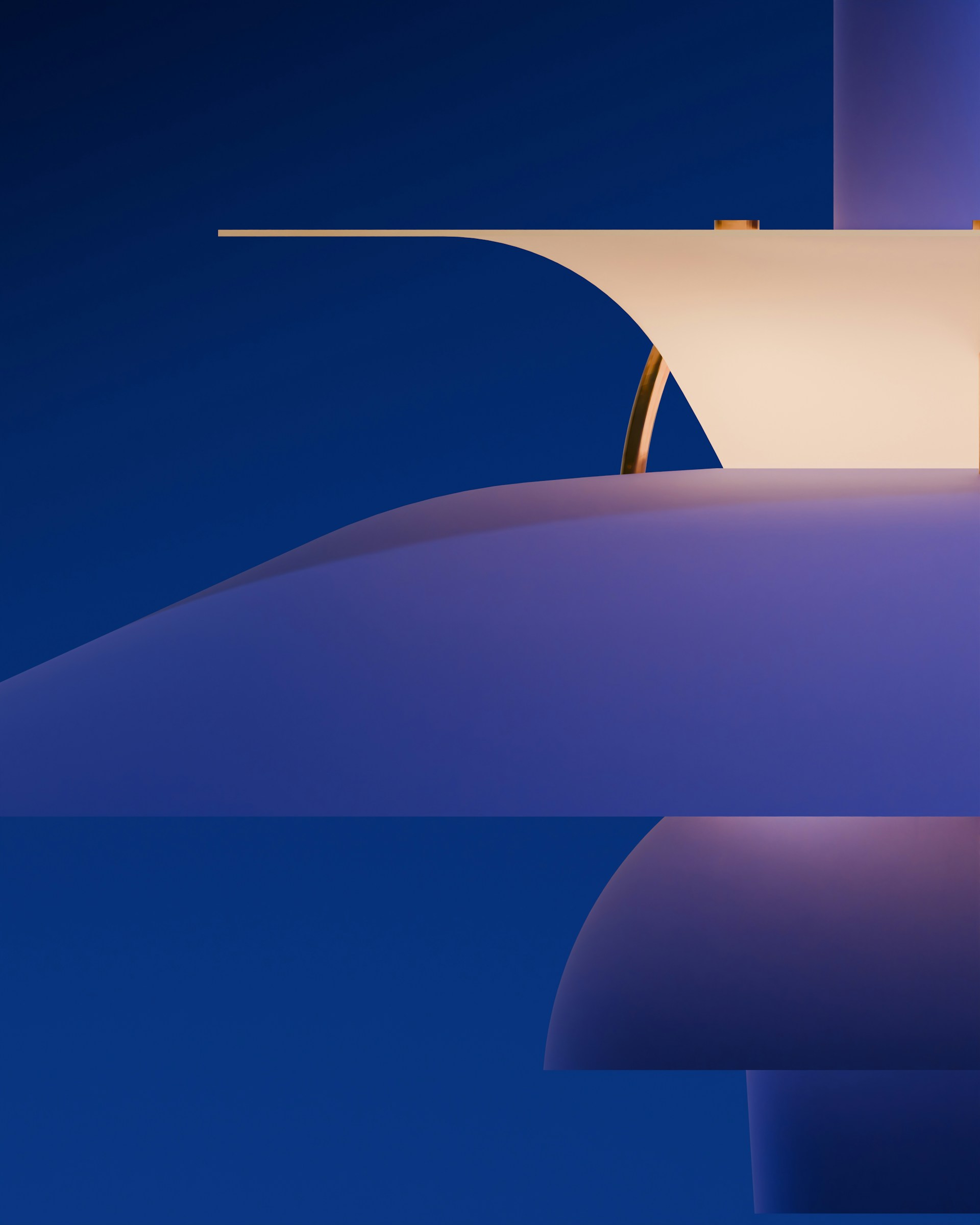 Minimalist Danish lighting suspended in cobalt silence. The form is deliberate, the shadow theatrical — an object that commands space without occupying too much of it.